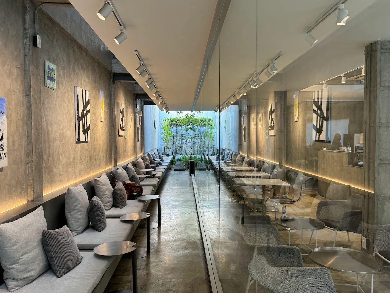 Laze is exactly what its name suggests: a cafe built for slowing down. Tucked on Sutthisan Winitchai Road near the Ari-Saphan Khwai corridor, it describes itself as a Bangkok urban hideout for coffee, pastry and vinyl, and all three are taken seriously. The turntables are a fixture rather than a prop, spinning classic records through the day in a space that manages to feel warm and unhurried without trying too hard to manufacture the atmosphere. The coffee is good, the drip is the thing to order, and the food menu is short enough that everything on it has clearly been thought about: a key lime pie that regulars cite unprompted, a Basque burnt cheesecake, a chocolate cronban, croissants that come out properly. Prices sit at ฿200-300 per person, which for the neighborhood and the level of care involved is honest. It draws a mix of locals, people working quietly on laptops and anyone who wants a Sunday morning that does not involve a queue, a waiting list or a TikTok strategy. The 4.9-star Google rating and 1,2000 reviews say what the low-key branding does not.